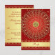 Detta dramatiska rika röda och gyllene bröllop r.s.v.p.-kort har en avtagbar central gyllene falskt graverad medaljong med den hinduiska guden Ganesh på, tillsammans med ett stort centralt gyllene rullande cirkelmönster med utsirade virvlande hjärtan och detaljer i form av gyllene stjärnor och prickar som ligger överst på en djupröd bakgrund med ytterligare ett lager av fina ljusröda virvlar och rullar som matchar bröllopsinbjudningarna nedan. ****Vänligen notera att inga av elementen på denna inbjudan är upphöjda eller präglade. Allt är tryckt plant. Denna inbjudan skulle vara perfekt för en indisk, hinduisk, sanskrit eller muslimsk bröllopsceremoni under våren, sommaren, hösten eller vintern, och skulle också fungera bra för andra formella evenemang som kräver klass och smak. Den visas här på vanligt papper. Om du vill ha ett tyngre papper föreslår jag metalliskt is eller champagnepapper, som ger den en vacker opalescent