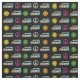Cute hippie-väv med roligt retro camper buss mönster av fredstecken och söt blommor i coola neon hippy färg.