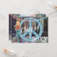 I inbjudan till studenten finns en blond hippie-flicka med stort blått och vitt fredstecken i himmel och röd, vit och blå sträng i ljus. Det finns en träbakgrund från Faux-ladan. En del grafik från Trina Clark på DigiScrapKits.com och Ursprung Digital Curio på www.etsy.com/shop/OriginsDigitalCurio.
