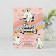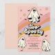 Två. Retro groovy Ghost Hippie Halloween födelsedagsfest inbjudan. Spooktaculärt andra födelsedag, bäcken inbjudan med retro-spöke, blommor och fladdermöss.