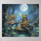 This whimsical poster features a moonlit scene: two frogs on lily pads-one dancing in tie-dye, the other strumming a guitar-surrounded by fireflies, mushrooms, and glowing notes.