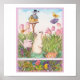 Skutt! En tydlig illustration av påskhare och fågelhus i vår-trädgården, en illustration av vår-trädgårdens vattenfärg med illustrerad kanin, vacker väggkonst för hemmet, kontoret. Springy & Playful poster by judithchengart