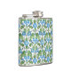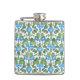 En söt Hip-kolv med nostalgiskt mönster av ljusblå morgonglasblommor på vit bakgrund. En del av "God morgon Glory"-samlingen Posh & Painterly. (mönster kommer att passa alla flaskor.)