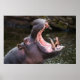 I bilden visar en närhet till en hippopotamus sin påträngande närvaro, med vidsträckta gavlar som avslöjar enorma tänder. I den här bilden fångas den obearbetade kraften och den primära skönheten hos det här afrikanska däggdjuret.