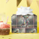 En glatt äldre kvinna dansar och skrattar, bär ett par överdimensionerade stjärnformade solglasögon och klara, färgstarka kläder
