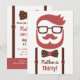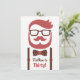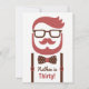 En stilren och trendig herr födelsedagsinbjudan med en illustration av en hipster herre med snyggt kammad hår, mustasch, skägg, nördiga glasögon, prickig fluga och hängslen. Färgpalett av rött och brunt. Se hipster-smart ut på den stora trettioårsdagen! Anpassa enkelt med dina festdetaljer i det tillhandahållna utrymmet.