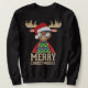 Hipster Moose - Santa Hat - Merry Christmoose Chri Lång Ärmad Tröja