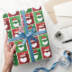 HipsterSanta hatt och skägg som slår in papper. När du presenterar en färg blockerade bakgrund i grön och röd visning av det populära skägget och hatten av jultomten i olik stilar. En original- design för inpackning av dina gåvor till dina älskade, beställare, kunder eller anställda.