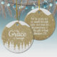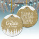 His Grace is Enough, Religious Holiday Ceramic Ornament with gold glitter snowy evergreen trees capturing the Christmas magic and joy of a Christian season. On the back, the sacred writing, Ephesians 2:8 KJV states, "For by grace are ye saved through faith; and that not of yourselves: it is the gift of God" all in customizable text, ready for you create your favorite bible verse in festive devotional design hanging decorations. Order your Christ teachings testaments today and make your custom inspirational doctrine keepsakes extra special with divine passages of the word of our Lord! 🎄⛪️
