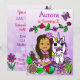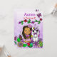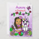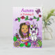 Vackra fantasifulla sagostil afroamerikanska eller latinamerikanska älvor födelsedagsinbjudningar med vikbar konststil handritade älvor, blommor och fjärilar och en vacker regnbågs enhörning. Lila, rosa, röd, limegrön och alla möjliga vackra starka färger!