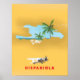 Hispaniola karta, sandstranden och handflatan träd på Karibiska ön.