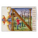 Italienska skolas Historiated initialt "N" som visar hewing träd för en man, "naturhistorien" vid Pliny fläderen (23-79AD) som lokaliseras på Bibliotecaen Marciana, Venedig, italien. Historiateden initialt "N" som visar hewing träd för en man, "naturhistorien" vid Pliny fläderen (23-79AD) skapades runt om det 15th århundradet.