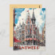 På detta vykort, i hand plockade sketch-stil, visas Europaskalan i Antwerpen, Belgien.