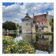 Den här fantastiska poster visar mitt foto av 1400-talets manshus som togs i maj. Det gamla slottet på en liten öbo mot en bakgrund av färgfulla shruber fyllda trädgårdar. Det medeltida huset och den ovanliga turRET såg mycket picturesk som reflekterades i vatten tillsammans med himlar, som var ett vackert blått med vita fluffa moln.