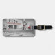 Den här bagagetaggen innehåller ett foto med ett rött stänk i färg på svart och vit av det populära målet längs Arizonas historiska väg 66 i Winslow, Arizona. ©Patricia AZ Phillips