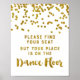 Var snäll och hitta er plats, men ställe är på dansskylten golv bröllop poster i vitt och guld konetti mönster med handskriven stil-skrift.