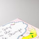 Hitta Joy i enkla Saken. Ett positivt ordspråk/citattecken som skrevs på ett moln med en liten tjej som sketch teckning på en sväng omgiven av söta fåglar, ett födelsehus, fjärilar, blommor och ett bi. I rosa, blues och gult färg.