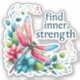 Det här klistermärket har en färgstark drakfluga och frasen "Hitta inre styrka", skapar det en perfekt som lyfter fram gåva till vänner, familjemedlemmar eller dig själv.