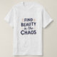 Bort med det oväntade med Hitta Beauty i Chaos typografi T-shirt! Den här designen är en påminnelse om att även i livets mest utmanande ögonblick finns det alltid skönhet att hitta. Bära den som en symbol för återhämtningsförmåga och perspektiv - förvandla kaos till något vackert.
