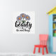 Den här inspirerande citattecknet är blommor i daisyn med "Hitta skönhet i det lilla sak".