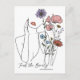 Detta konstverk presenterar en elegant linjedragning av en kvinnas siluett med endast hennes läppar markerade i djärkt rött. Ljust färgade blommor – inklusive prästkragar, vallmo och vilda blommor – blommar över hennes form och blandar natur med femininitet. Längst ner uppmanar orden *“Hitta skönheten i vardagen”* till positivitet och mindfulness, vilket gör designen både konstnärlig och inspirerande. 🌸✨