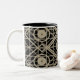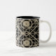 Hive Mind coffee mugs and steins. Hive Mind is an abstract techno design created by Anna M. Asbury and consists of a black background with a faded khaki design.