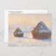 Ett vykort för bra med målningen Claude Monet (1940-1926), Wheatstacks - Snö Effect, God morgon (1891). Ett landskap som är täckt av snö och där vetet ligger i soluppgång.