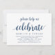 Modern Rustic, Navy Blue Script, kallat inbjudningskort (med korttitel: hjälp oss att fira). Det är perfekt för er mottagning av bröllop-delegationen/party efter bröllop firande. Lägg till informationen i matchande svart teckensnitt/text.