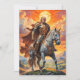 En modig Trump iklädd praktfull gyllene rustning rider på en majestätisk vit häst mot en hänförande bakgrund av en livfull, solbelyst himmel. Riddarens fladdrande röda kappa och hästens kraftfulla ställning inger en känsla av hjältemod och storslagenhet. De dramatiska molnen och den strålande solen skapar en slående kontrast som förstärker scenens episka och tidlösa känsla. Denna bild fångar essensen av medeltida riddarskap och äventyr, vilket gör den till en fängslande syn för entusiaster av fantasy och historiska teman.