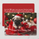 Fira säsongen med den söta julhälsningen! Detta julkort visar en bedårande pug-valp som bär en tomtehatt, insvept i festlig röd band, och sitter framför ett lysande julgran. Perfekt för hundälskare, pug-ägare eller någon som uppskattar en touch av fantasin under högtiden. Ett charmerande sätt att sprida glädje, detta kort är idealiskt för vänner, familj eller kollegor, garanterat att ge ett leende!