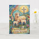 Det här söta påskkortet har en färgrik målning av en moderfår med två lamm tätt intill, omgivna av ljusa vårblommor med ett kors som mjukt reser sig i bakgrunden. Konsten fångar värme, trygghet och öm kärlek och gör det till en vacker symbol för den omsorg Gud har för den du värdesätter. Med ”Heartwarming Easter Blessings” på framsidan och ett budskap på insidan om Frälsarens tröstande närhet och fred, är det här kortet perfekt för alla som behöver en försiktig påminnelse om att de är tryggt omslutna av Hans armar. Det är ett idealiskt val när du vill att din påskhälsning ska kännas både visuellt tilltalande och djupt uppmuntrande.