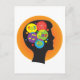 En profil siluett av en ung person, med ett huvud fullt av idéer representerade av färgglada ikoner.