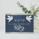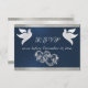I designen finns länkade hjärtan och duvor på blå bakgrund med menyflikshöljet gräns, snyggt skriptinnehavare ställe för datumet på framsidan och svarsuppgifter på ett vitt pärlskydd. Perfekt för det enkla till de flesta elegant bröllop. Finns i flera färg för temat bröllop. (Bandet simuleras i teckningen). Designat att samordna med "två skall bli en - Silver & Guld"-samlingen för Bröllop. Om du vill ändra information klickar du på "Anpassa". Om du vill flytta texten eller ändra texten storlekt, teckensnitt eller färg klickar du på "Klicka för att anpassa ytterligare"