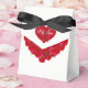 Den här förmånslådan kan användas för ett bröllop, en årsdag eller ett speciellt tillfälle, Valentines day. Den visas i vitt med en svart knappram och med ett söt röd ros i en hjärtform. Anpassa det här objektet eller köp som det är.