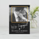 Eleganta, klassiska och moderna bröllopskort för förlovning. Svart och vit färg med falskt guld folie ram. Litet hjärta. Skrift topografi handskrivna bokstäver. FRAMSIDA på kortet har foto / bild och VI ÄR FORLOVADE i skrift topografi bokstäver. Perfekt för alla typer av bröllop, när som helst på året. Lätt att redigera inbjudningar - anpassa med din text. Se kollektionen.