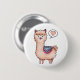 Söt akvarellmålning av en fantasifull tan lama med en flerglättad randig tyg på ryggen. Till höger är en pratbubbla med ett sött rosa hjärta inuti.