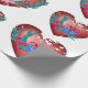 Hjärta med blå och röda blommor och grönt grenar presentpapper