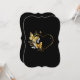 Guld hjärtformade ram, dekorerat med guld, smycken och vita fjärilar på svart bakgrund.
