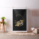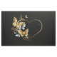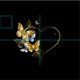 Guld hjärtformade ram, dekorerat med guld, smycken och vita fjärilar på svart bakgrund.