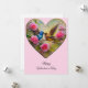Hjärta med rosa blommor och fåglar Valentine Julkort