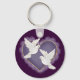 Romantisk design har ett par flygande vita duvor på lila hjärta med kanter i snöre.