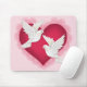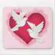 Romantisk design har ett par flygande vita duvor på rosa hjärta med kanter i snöre.