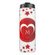 Cute Red stars mönster och vitt hjärta i röd cirkel. Valfritt monogram