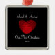 Vår första julprydnad presenterar en härlig röd thumbprinthjärtauppsättning på en riksvartbakgrund! Personifiera med din information och datera, och du är all uppsättning som går! Den underbara daterade minnessakgåvan för din första jul och ett underbart tillägg till dig jul smyckar samlingen.