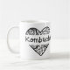 Kärlekkombucha? Nu kan du dela den kärlek med alla med denna kaffemugg. Den presenterar en klotterhjärtadesign med ord "Kombucha" på den.