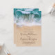 Drömmande stranddestination bröllopsinbjudan med en tropisk sandig kuststrand, akvablåa havsvågor, hjärtan snidade i sanden med era initialer, och en modern bröllopsmall som är lätt att anpassa.