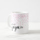 Yaya kaffemug med en vacker hjärt-kalligrafifont med ett fält av små rosa hjärtan. Besök vår butik för att se denna mugg i ett stort urval av mormorsnamn.