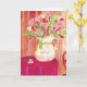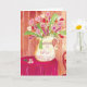 Det här fantasifulla hjärtbukettkortet är en vacker överraskning i brevlådan. Bilden är en flerfärgad akvarellmålning av en kanna överfull med hjärteblommor, ett rött dukklätt bord, hjärtväggpapper och en hjärtformad trästol. Insida: Tom RECENSION: "Så vackert kort. Färgerna är så fantastiska."