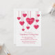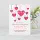 En inbjudan till älskare. Nio hjärtan hänger från en sträng mot en kritvit bakgrund med pin polka dots. (FP) Perfekt för Alla hjärtans dag, Spara datum meddelande med flera.