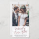 Skicka glatta helgdag önskemål som ny Mr. Och Mrs! Fira din första gifta jul och två av dina favoriter bröllop bilder med lodrät snyggt "Merrily All After"-helgdag. All text i den här mallen är enkel att anpassa för att inkludera alla formuleringar, som Merry and Married, Merrily Married, Glad helg, Säsonhälsningar, nyårscheckar osv. Ta bort text på baksidan om du föredrar att ge skrivan en anteckning för ett bröllop-tack och en kombination av julkort. (IMAGE PLACEMENT TIP: Ett enkelt sätt att centrera ett bild exakt på vilket sätt du vill är att skicka det till skörd innan du laddar upp det på Zazzles webbplats.) Den moderna minimalistiska svartvita och burgundsformade designen har mörk-handskriven stil-skripttypografi och 2 lodrät foton efter eget val. Familjen och vännerna kommer att visa elegantens anpassade kort i kärlek. Skål för nylingarna!
